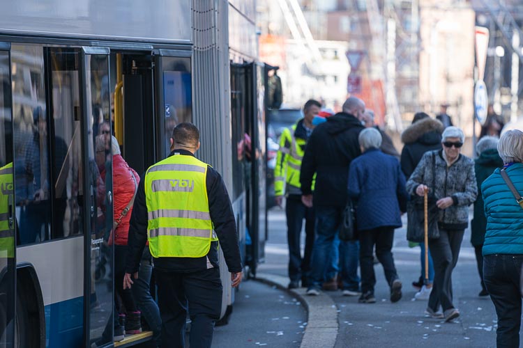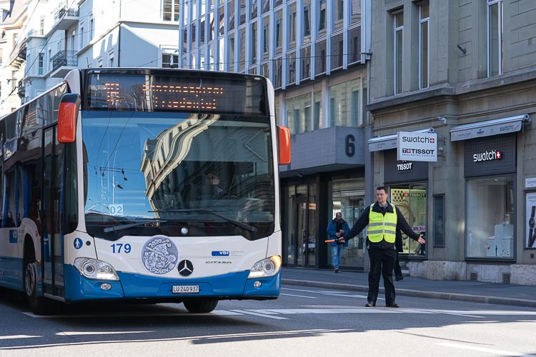 An verschiedenen Punkten wie dem Bundesplatz, dem Pilatusplatz oder beim Luzernerhof werden die Busse gewendet oder umgeleitet. Damit alles reibungslos verläuft, stehen während der ganzen Fasnacht täglich rund 20 Mitarbeitende von vbl im Einsatz. Einige davon haben wir bei der Arbeit begleitet.
